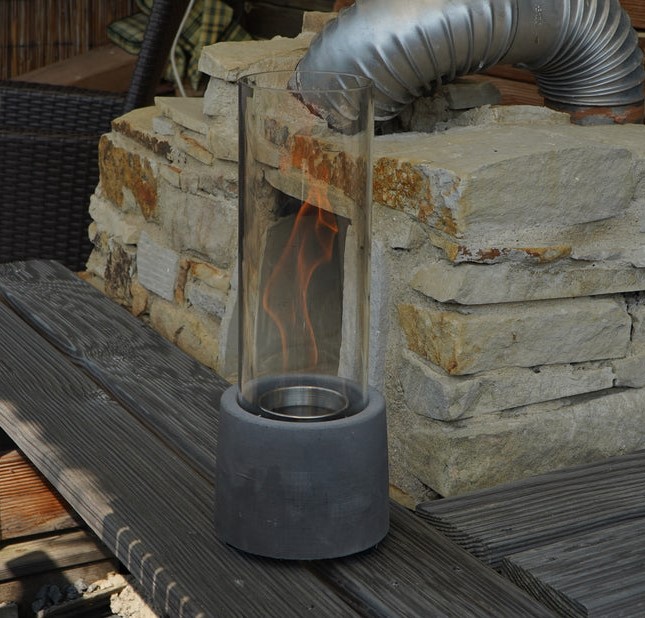 Ein handgemachter Tischkamin inkl. Glas für Haus & Garten. Ein absoluter Blickfang.